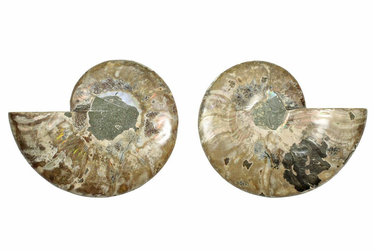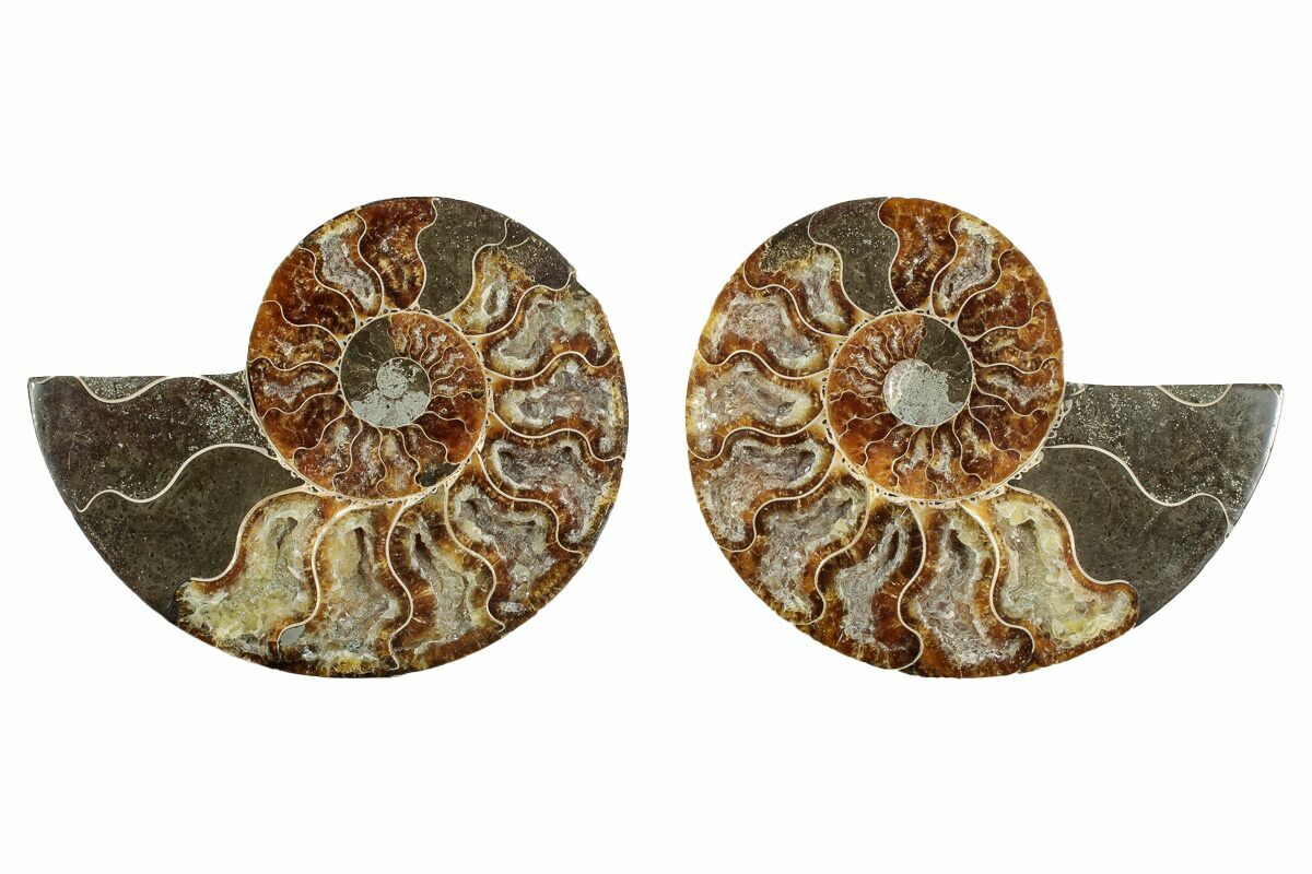 It exhibits gorgeous mineralization within the chambers, each separated by white calcite septa (divisions). This highly polished exotic ammonite makes a superb display piece with tremendous historical appeal.