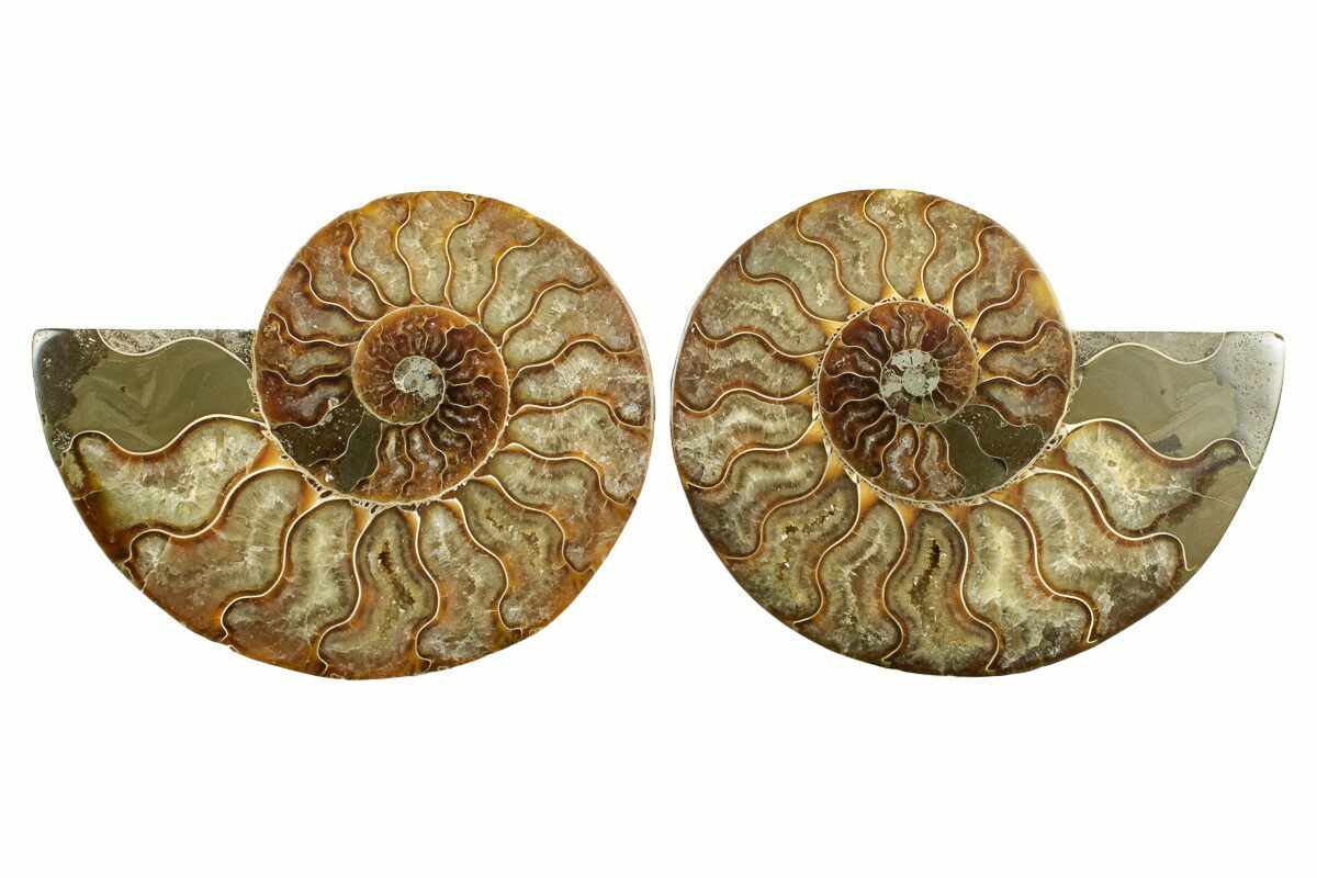 It exhibits gorgeous mineralization within the chambers, each separated by white calcite septa (divisions). This highly polished, exotic ammonite makes a superb display piece with tremendous historical appeal.