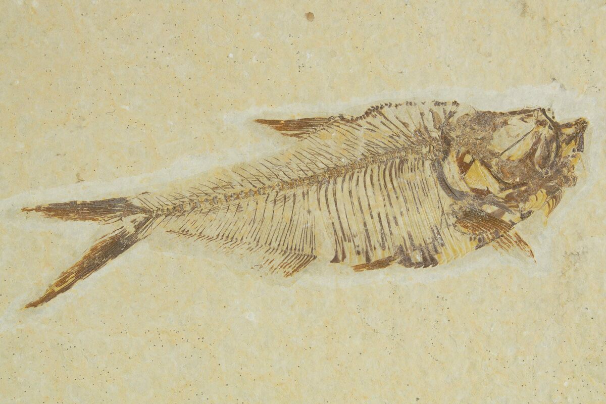 Today the wonderfully preserved fossils of Diplomystus and other Fossil Lake fauna are collected in several private quarries around Kemmerer, Wyoming. The best preserved fish fossils come from the coveted 18 Inch Layer. This layer is collected at night under high-powered lights, enhancing the faint signs of fish under the surface indicating underlying fossils. These “ghosted” fish then must go through many hours of manual preparation to remove the overlying rock and reveal the Green River fauna in all of its glory.