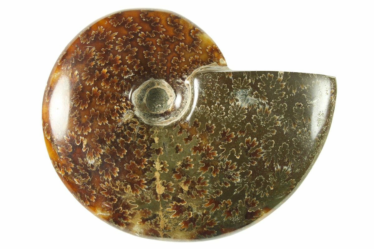 This is a 4.3" wide polished ammonite from Madagascar of the genus Cleoniceras. It is absolutely gorgeous, displaying a distinctive "oak-leaf" suture pattern on the surface. This 110 million year old ammonite is truly a natural work of art and is very displayable on the included acrylic stand.