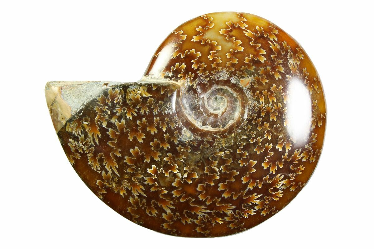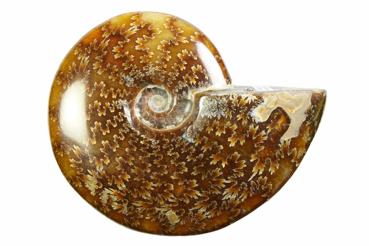 This is a 4.3" wide polished ammonite of the genus Cleoniceras, collected in Madagascar. It is absolutely gorgeous, displaying a distinctive "oak-leaf" suture pattern on the surface. This 110 million year old ammonite is truly a natural work of art, displaying beautifully on the included acrylic stand.