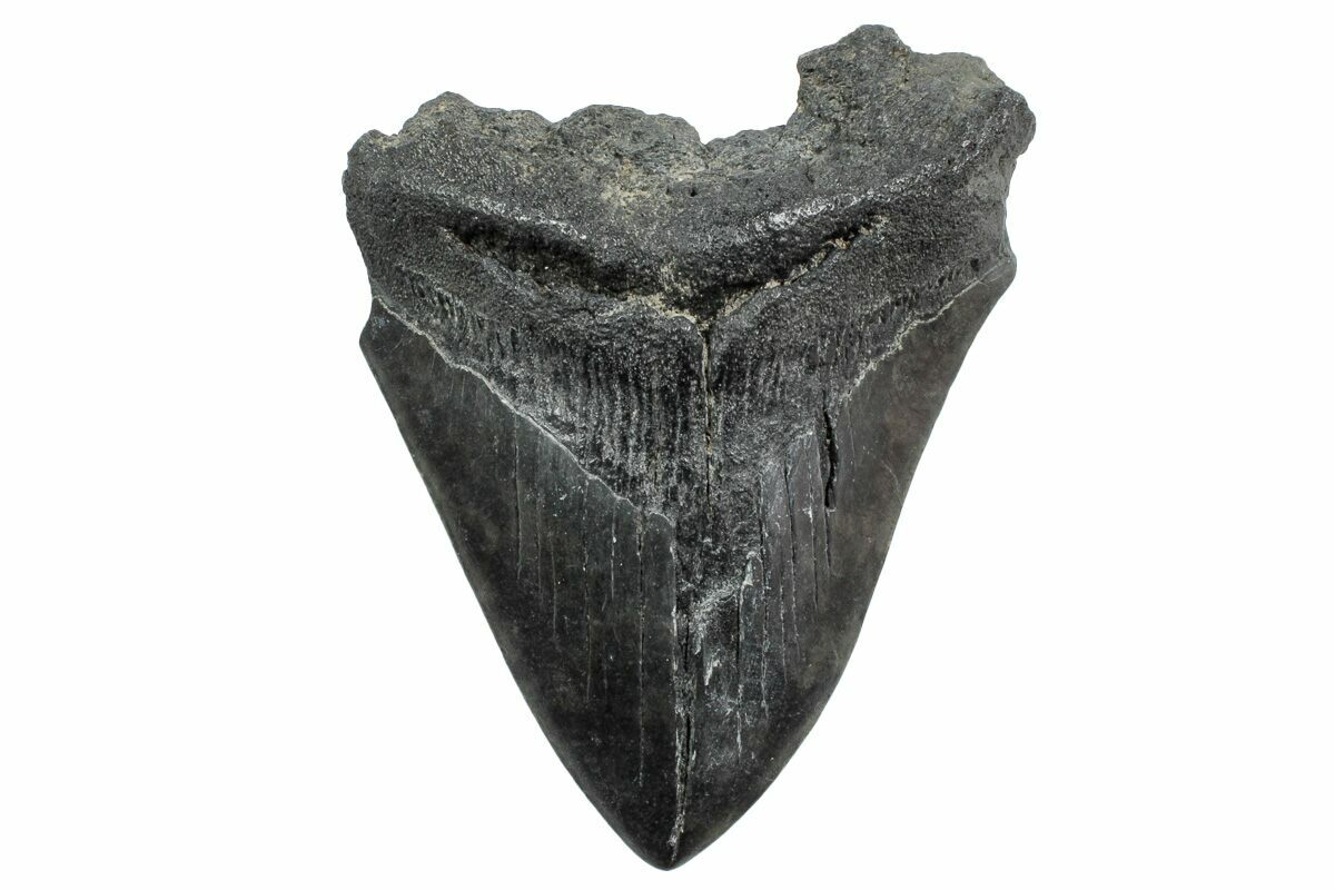 This is a 4.36" long, fossil Megalodon tooth collected in South Carolina. The tooth would have come from an adult, prehistoric, mega-shark in the 35+ foot size range.