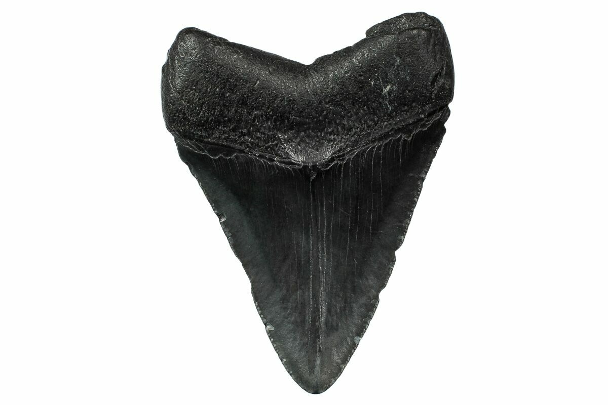 The standard measure for megalodon teeth is slant height, or the longest edge of the tooth. Adult megalodon teeth were typically in the 4 to 5 inch range: teeth over 6 inches are rare and represent super-sized individuals. Only a handful of teeth have ever been found over seven inches.