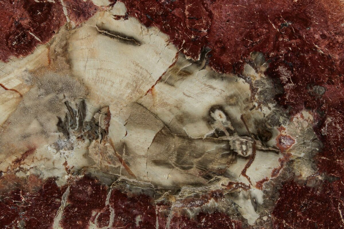 Madagascar petrified wood comes primarily from extensive Triassic-aged deposits in the Mahajanga Basin of northwestern Madagascar, where ancient conifer forests—often attributed to species related to Araucarioxylon—were buried by volcanic ash and floodplain sediments roughly 225–240 million years ago. Over immense spans of time, silica-rich fluids percolated through these sediments, replacing the cellular structure of the wood with chalcedony, jasper, agate, and quartz while preserving growth rings, bark textures, and even microscopic details. The region’s unique geochemistry—especially its iron, manganese, and occasionally copper content—produces the vivid palette Madagascar petrified wood is famous for, including deep brick reds, golden yellows, smoky blacks, and pastel pinks. Many logs are found fully silicified and naturally fractured into large, rounded segments that local artisans cut into slabs, spheres, eggs, and freeforms. These deposits stretch across arid badlands where erosion steadily exposes new material, making Madagascar one of the world’s premier sources of highly colorful, beautifully patterned fossil wood.