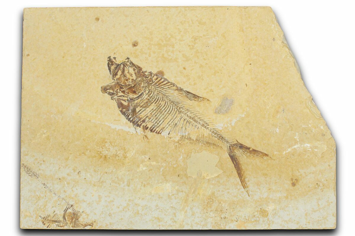 Today the wonderfully preserved fossils of Diplomystus and other Fossil Lake fauna are collected in several private quarries around Kemmerer, Wyoming. The best preserved fish fossils come from the coveted 18 Inch Layer. This layer is collected at night under high-powered lights, enhancing the faint signs of fish under the surface indicating underlying fossils. These “ghosted” fish then must go through many hours of manual preparation to remove the overlying rock and reveal the Green River fauna in all of its glory.