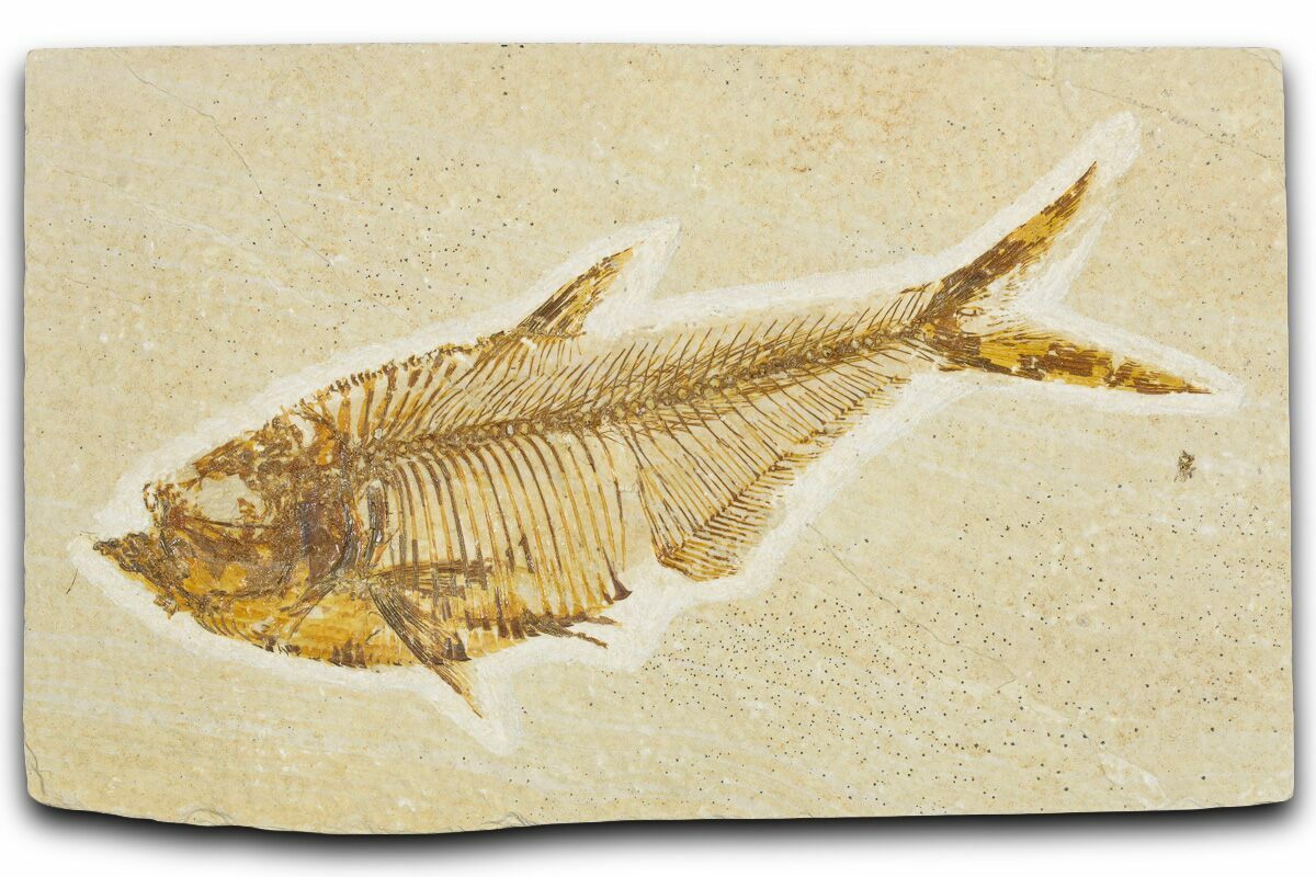 Today the wonderfully preserved fossils of Diplomystus and other Fossil Lake fauna are collected in several private quarries around Kemmerer, Wyoming. The best preserved fish fossils come from the coveted 18 Inch Layer. This layer is collected at night under high-powered lights, enhancing the faint signs of fish under the surface indicating underlying fossils. These “ghosted” fish then must go through many hours of manual preparation to remove the overlying rock and reveal the Green River fauna in all of its glory.