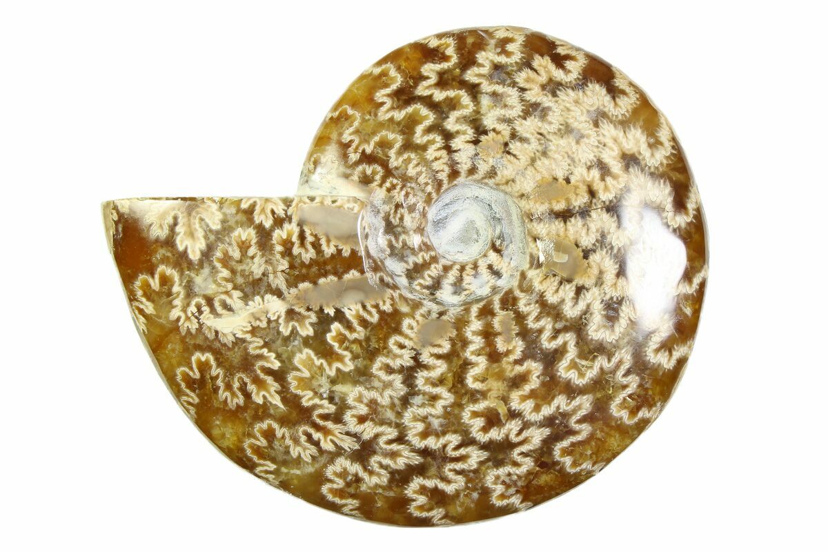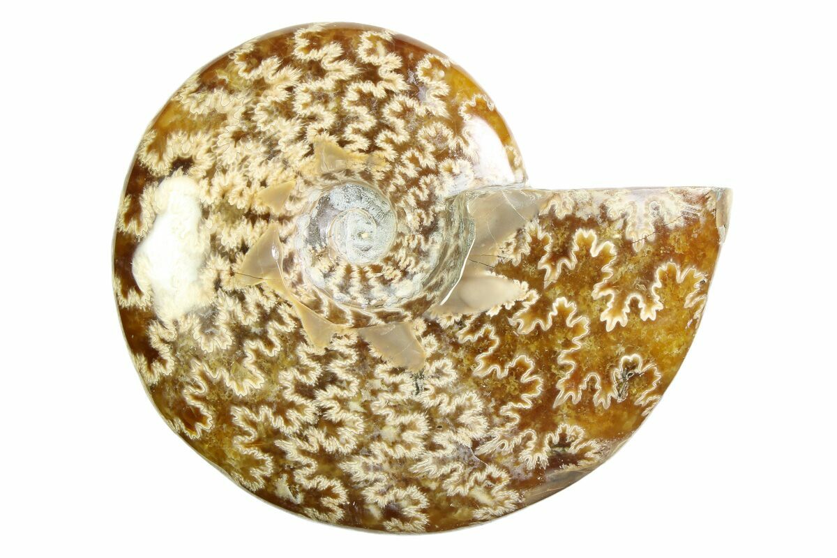 This is a 4.4" wide polished ammonite of the genus Cleoniceras, collected in Madagascar. It is absolutely gorgeous, displaying a distinctive "oak-leaf" suture pattern on the surface. This 110 million year old ammonite is truly a natural work of art, displaying beautifully on the included acrylic stand.