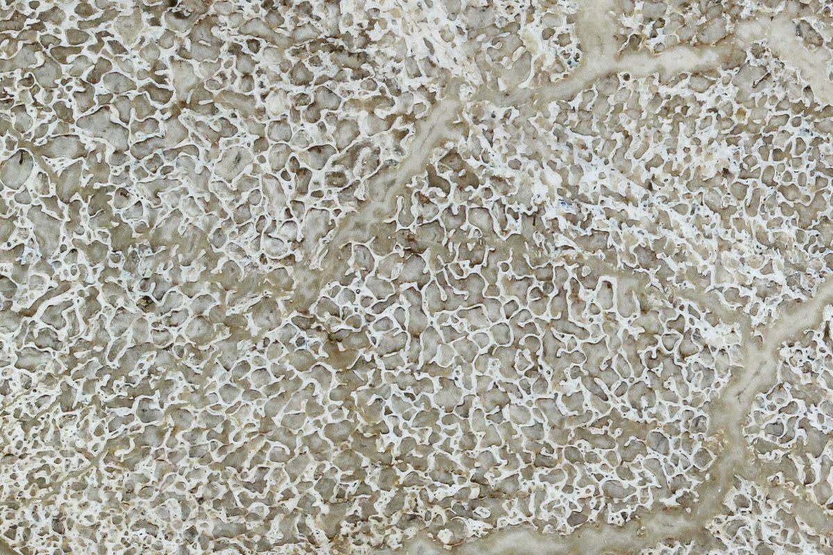 Agatized bone, sometimes referred to as "gembone", is fossilized dinosaur bone in which the original fossil material has been replaced by silica. The impurities within the silica are what give the bone color. Interestingly, this silica replacement often happens at a sub-cellular level leaving the internal structures intact.