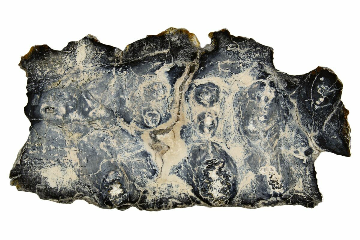 This is a 4.4" wide section of a Columbia mammoth (Mammuthus columbi) molar collected from the coastal region of South Carolina. It has been sliced and highly polished to a glossy-finish on one side. The other side contains visible feeding wear and has been left in its natural state.