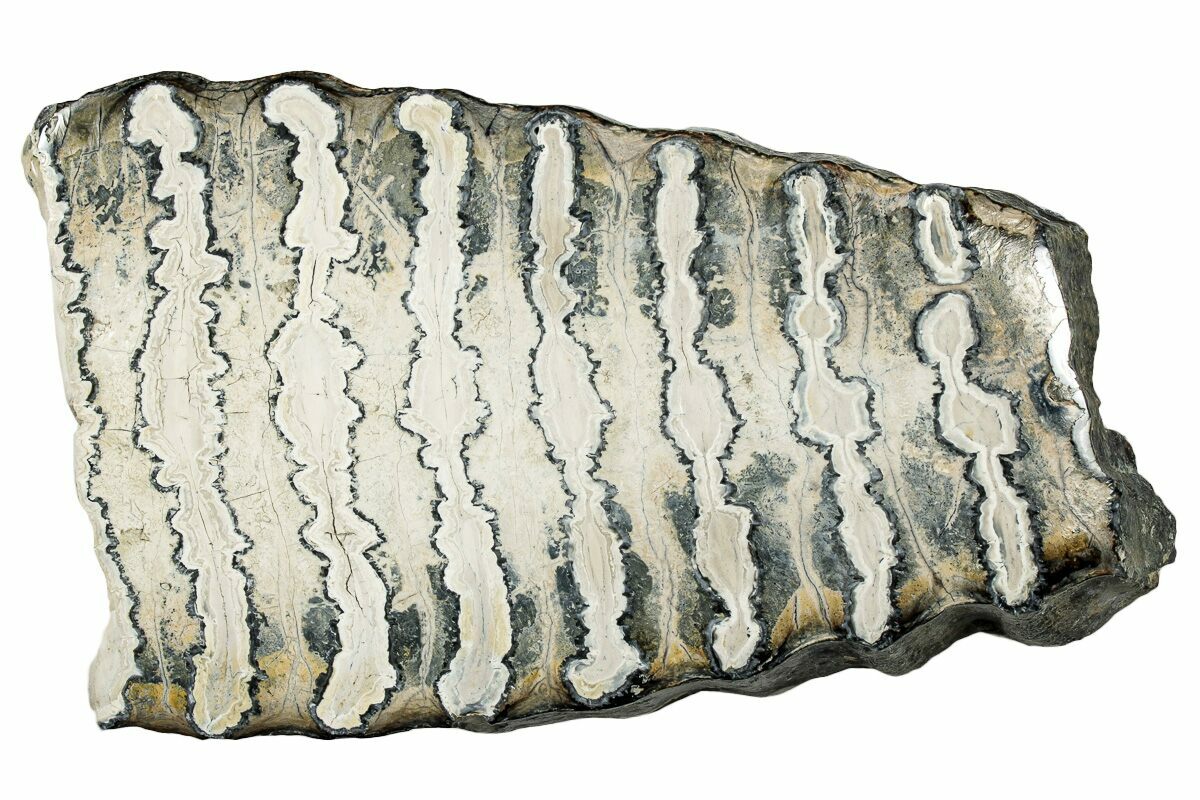 This is a 4.45" wide slice of a Columbia mammoth (Mammuthus columbi) molar collected from the coastal region of South Carolina. It has been sliced and highly polished to a glossy-finish on both sides. Really an interesting piece.