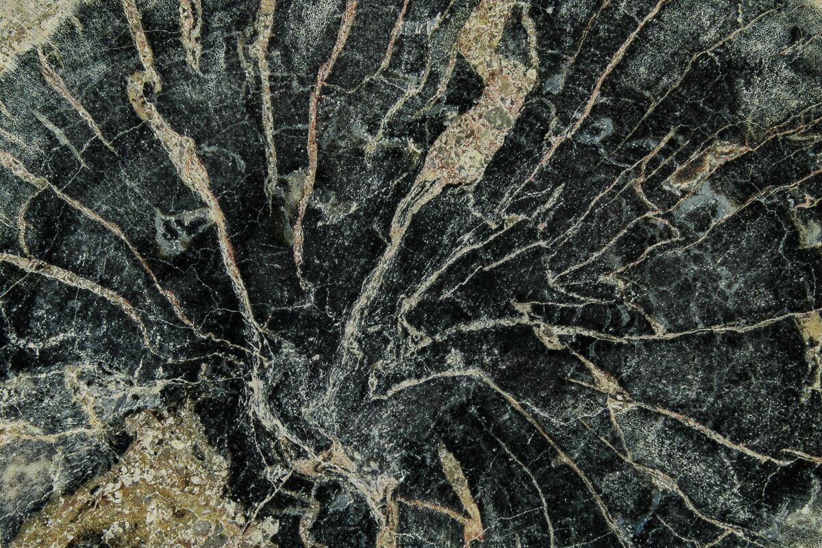 This is a 4.45" wide end-cut of a petrified wood limb from Indonesia. The wood has been polished on one side to reveal the inner wood detail.