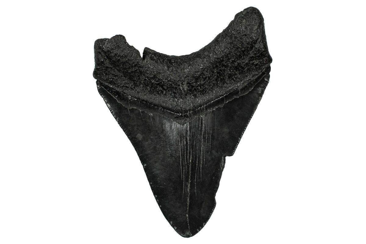 The standard measure for megalodon teeth is slant height, or the longest edge of the tooth. Adult megalodon teeth were typically in the 4 to 5 inch range: teeth over 6 inches are rare and represent super-sized individuals. Only a handful of teeth have ever been found over seven inches.