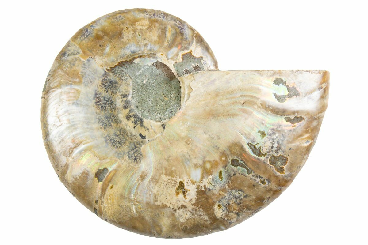 4.5" Cut & Polished Ammonite Fossil (Half) - Deep Crystal Pockets