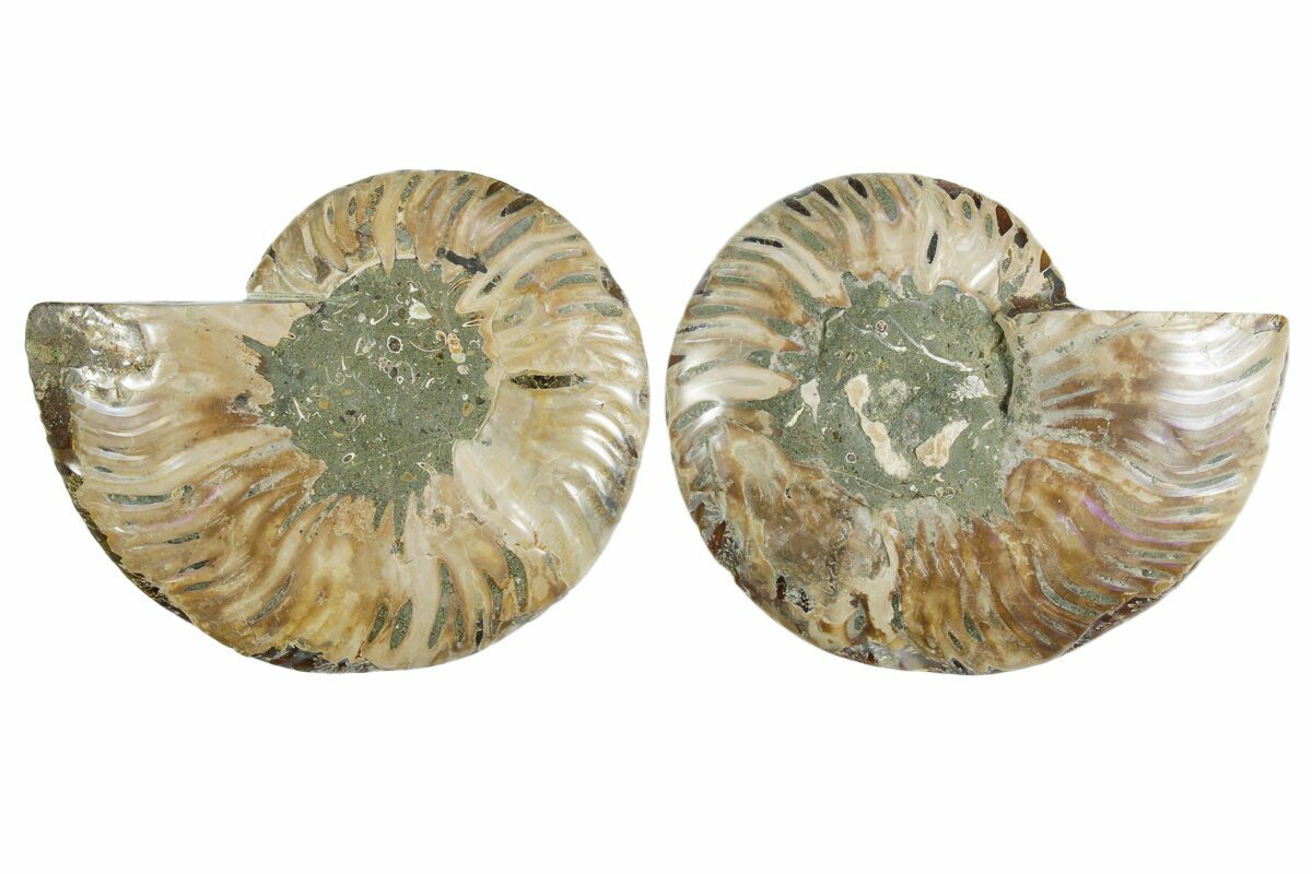 It exhibits gorgeous mineralization within the chambers, each separated by white calcite septa (divisions). This highly polished exotic ammonite makes a superb display piece with tremendous historical appeal.