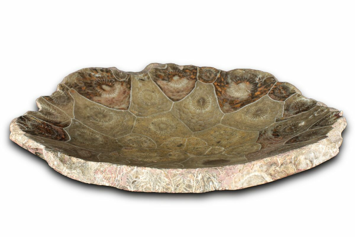 4.5" Polished Fossil Coral (Actinocyathus) Dish - Morocco