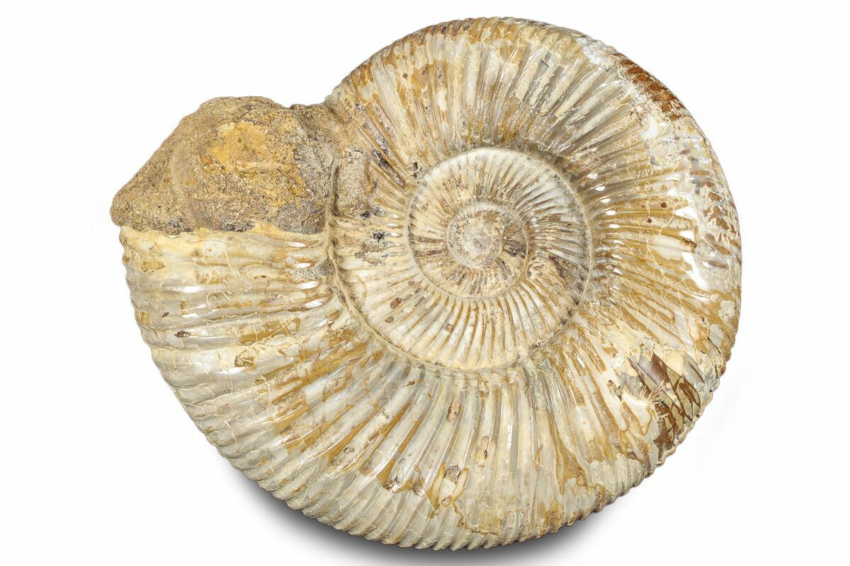 Ammonites were ancient marine cephalopods, similar to today's squids and octopuses, but with a defining feature: their distinctive, tightly coiled spiral shells. These shells, resembling those of modern nautiluses, served as both a protective home and a buoyancy aid, allowing ammonites to navigate the prehistoric seas with ease. First emerging around 240 million years ago in the Triassic Period, ammonites thrived for over 175 million years, adapting through numerous forms and sizes. As predatory creatures, they likely fed on smaller marine organisms, using their tentacles to capture prey. However, their long reign came to an end 65 million years ago at the close of the Cretaceous, coinciding with the mass extinction event that also eliminated the dinosaurs.