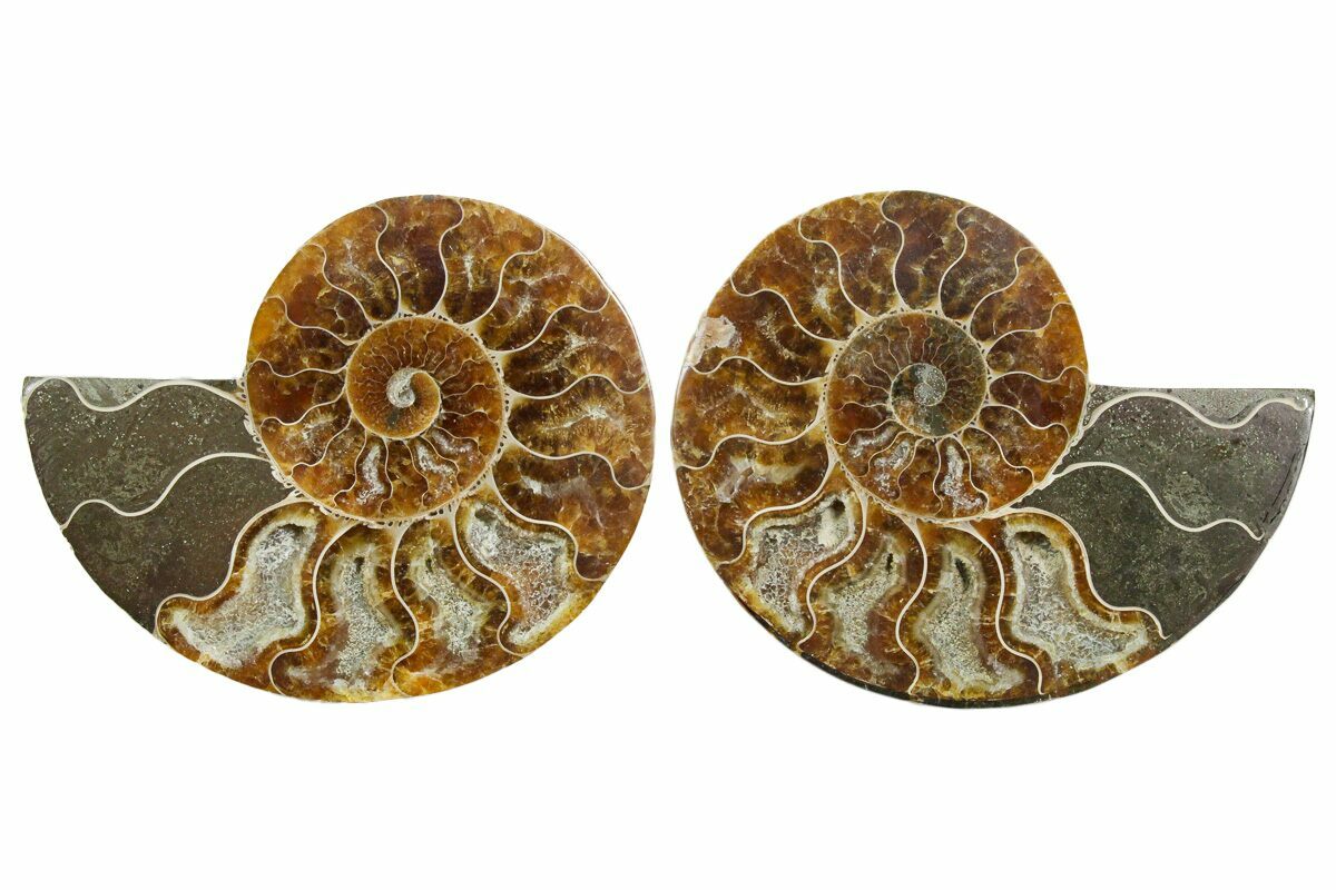 It exhibits gorgeous mineralization within the chambers, each separated by white calcite septa (divisions). This highly polished exotic ammonite makes a superb display piece with tremendous historical appeal.