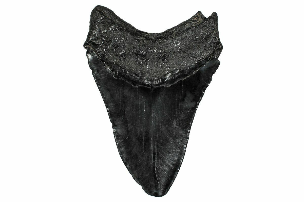 Megalodon had a cosmopolitan (global) distribution and its giant teeth can be found in deposits throughout the world. Some are collected on land in phosphate deposits, while many are collected from rivers and coastlines after eroding out of the rocks. This contributes to the water-worn, polished appearance of many teeth.