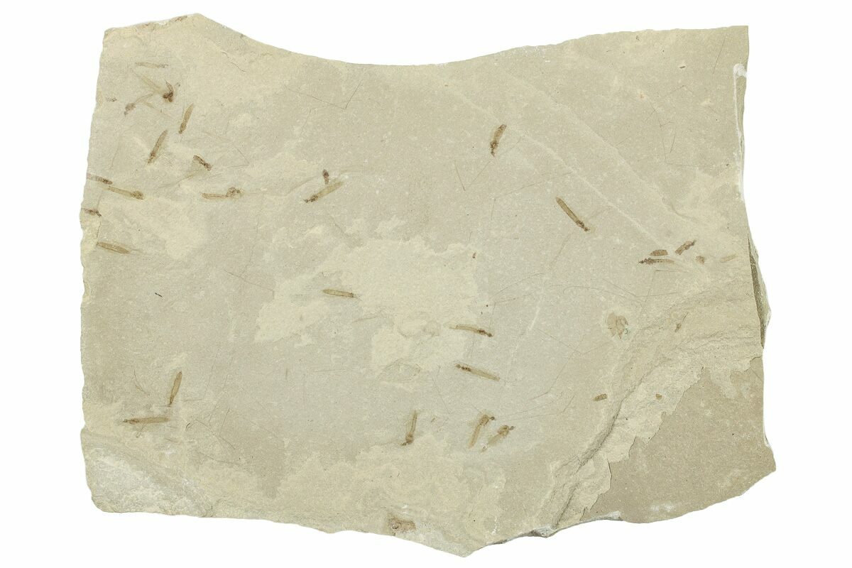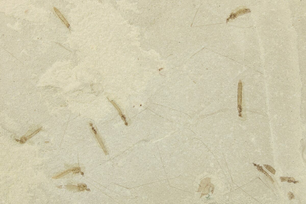 This is a 4.6" wide mortality plate featuring several detailed crane flies (family Tipulidae), collected from the Green River Formation of Utah. While the Green River Formation is best know for its fish fossils, other areas produce incredible plant fossils and insect fauna.