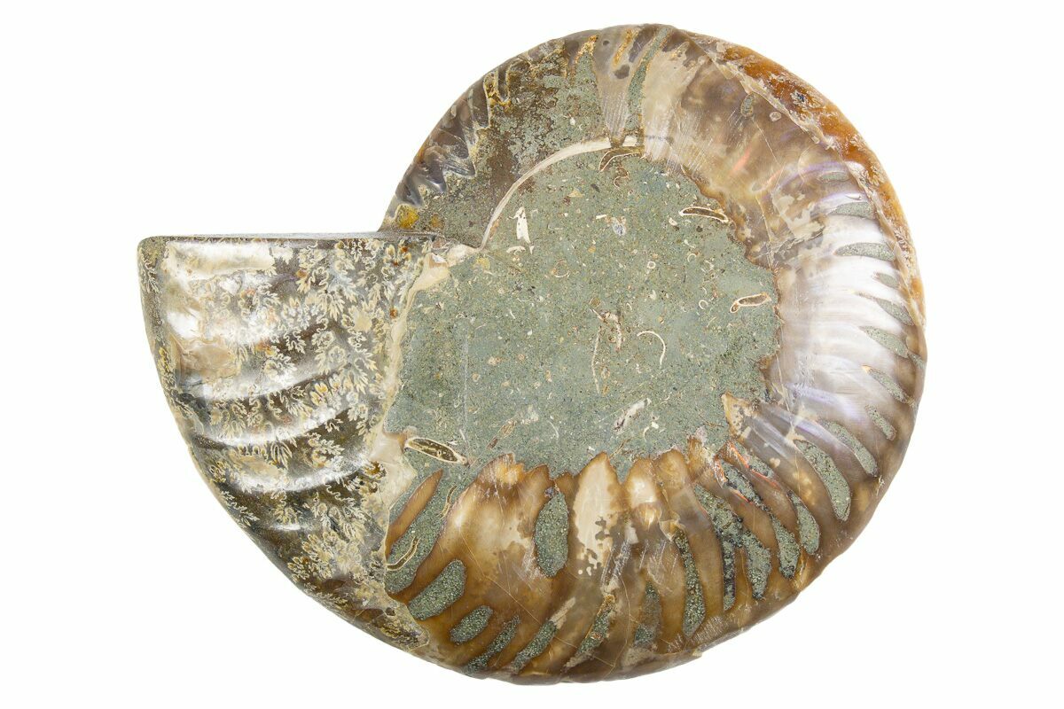4.6" Cut & Polished Ammonite Fossil (Half) - Deep Crystal Pockets