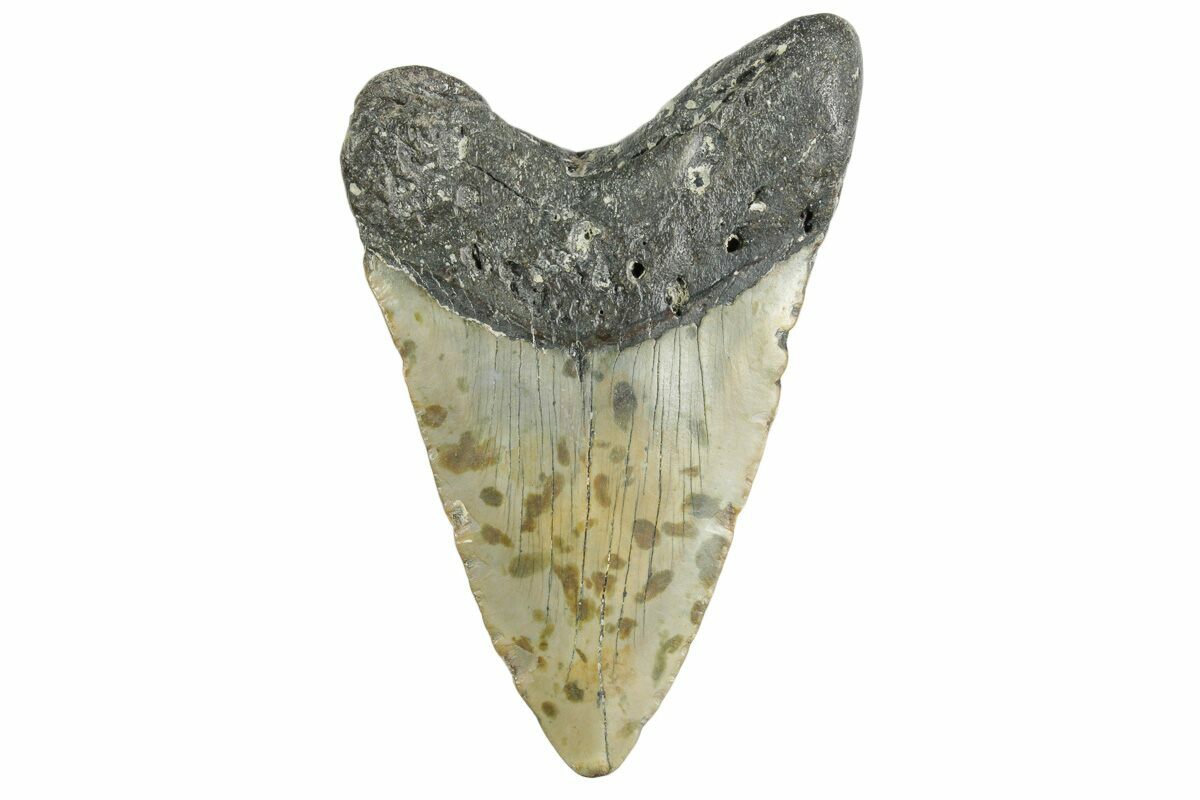 Megalodon had a cosmopolitan (global) distribution and its giant teeth can be found in deposits throughout the world. Some are collected on land in phosphate deposits, while many are collected from rivers and coastlines after eroding out of the rocks. This contributes to the water-worn, polished appearance of many teeth.