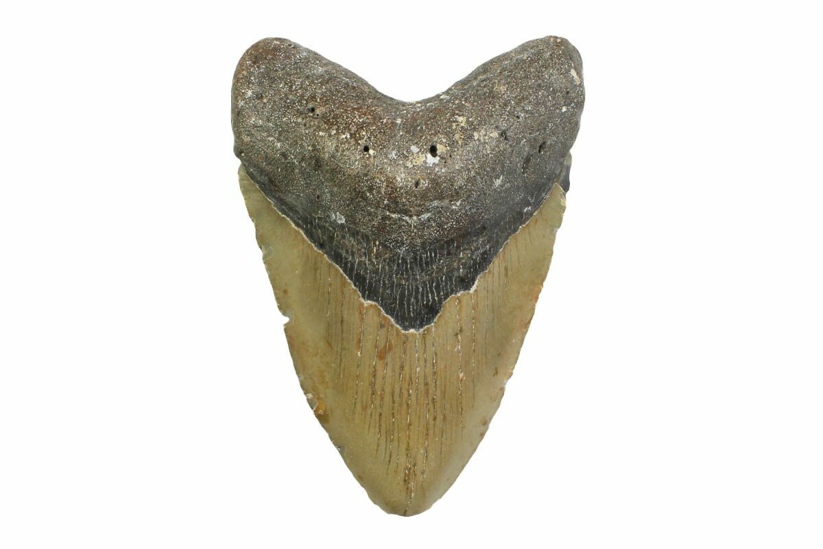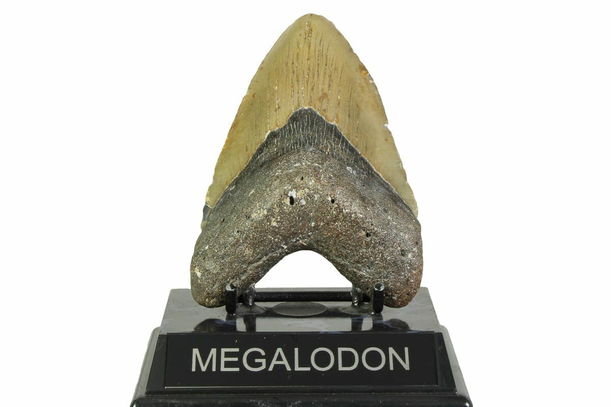 Megalodon had a cosmopolitan (global) distribution and its giant teeth can be found in deposits throughout the world. Some are collected on land in phosphate deposits, while many are collected from rivers and coastlines after eroding out of the rocks. This contributes to the water-worn, polished appearance of many teeth.