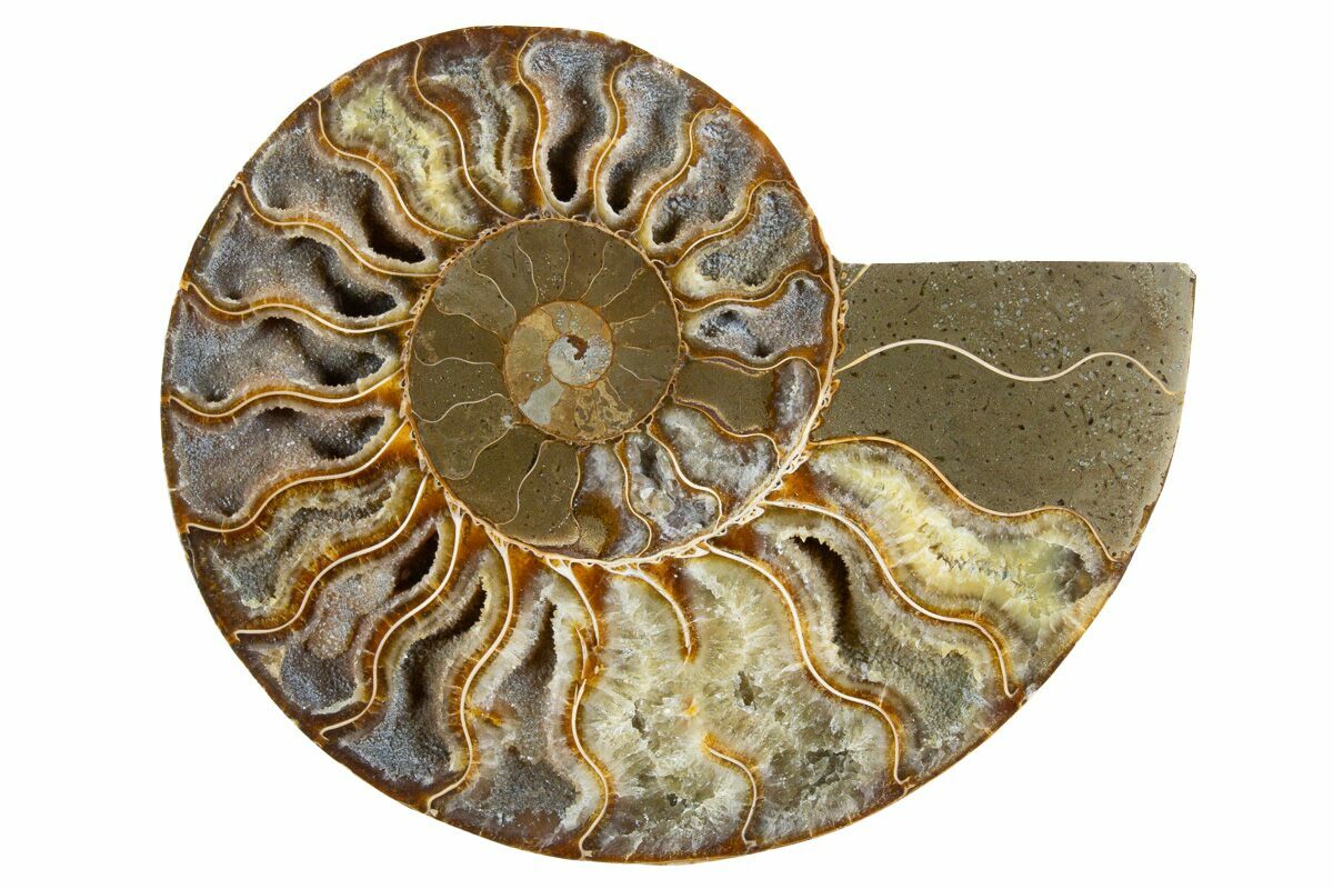 4.7" Cut & Polished Ammonite Fossil (Half) - Deep Crystal Pockets
