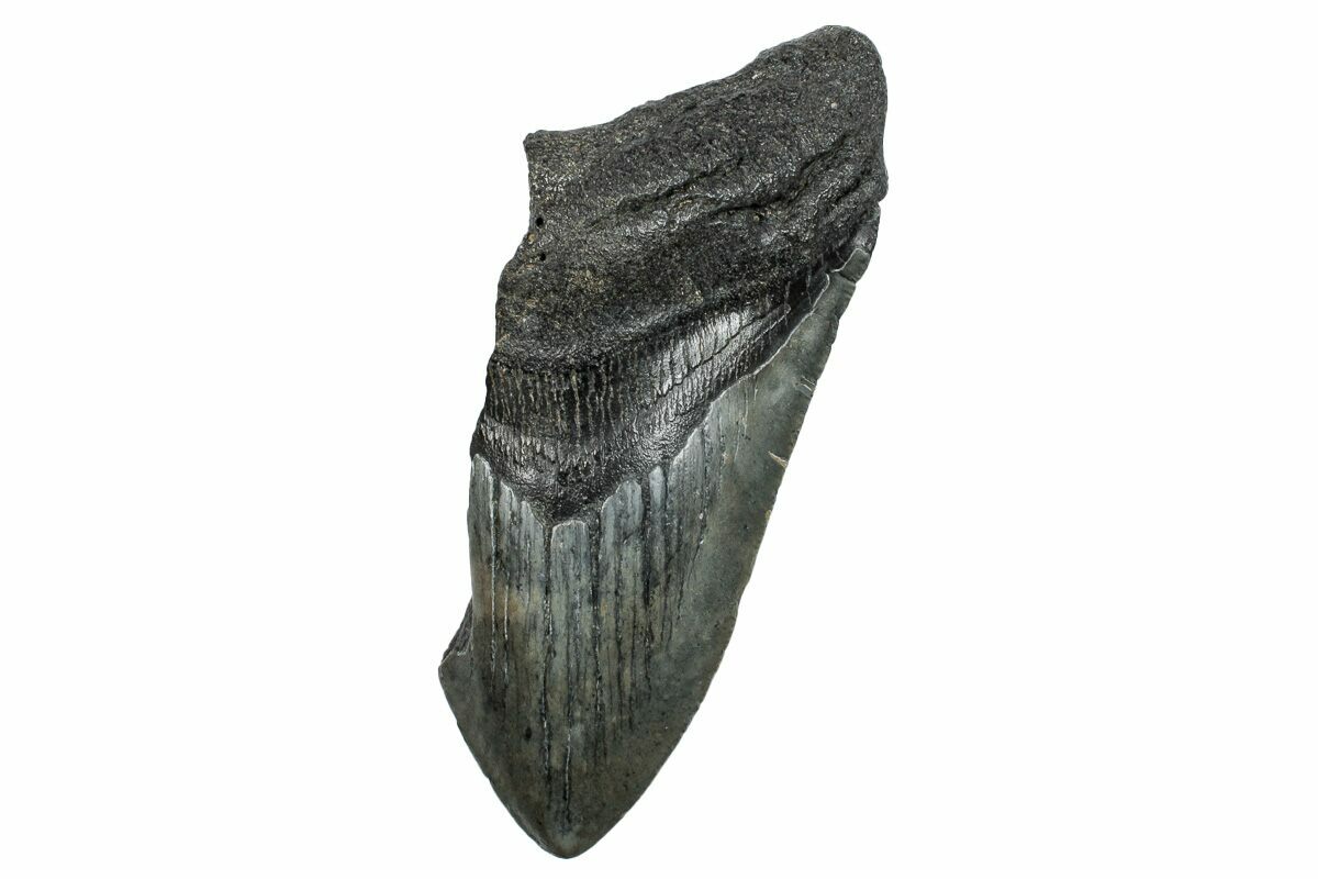 This is a bargain, 4.7" long fossil Megalodon tooth collected from a river in South Carolina. The tooth would have come from an adult, prehistoric, mega-shark in the 35+ foot size range.