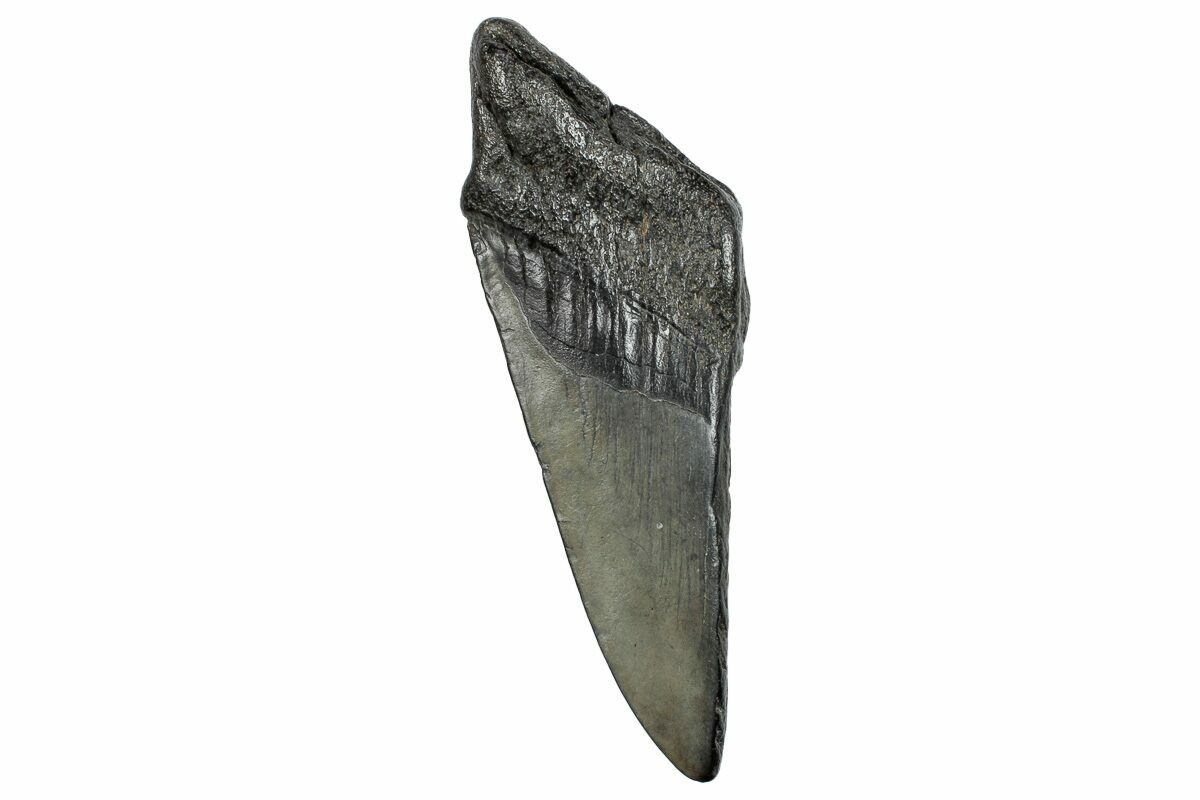 The standard measure for megalodon teeth is slant height, or the longest edge of the tooth. Adult megalodon teeth were typically in the 4 to 5 inch range: teeth over 6 inches are rare and represent super-sized individuals. Only a handful of teeth have ever been found over seven inches.