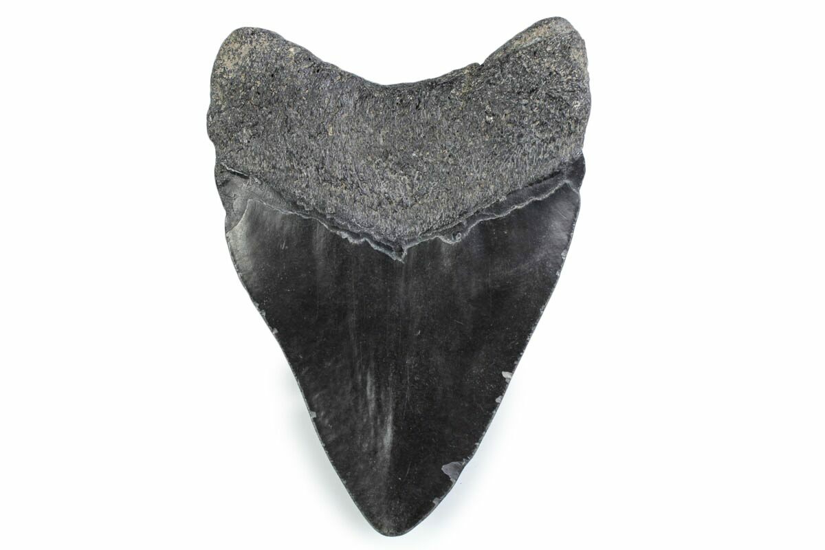 Megalodon had a cosmopolitan (global) distribution and its giant teeth can be found in deposits throughout the world. Some are collected on land in phosphate deposits, while many are collected from rivers and coastlines after eroding out of the rocks. This contributes to the water-worn, polished appearance of many teeth.