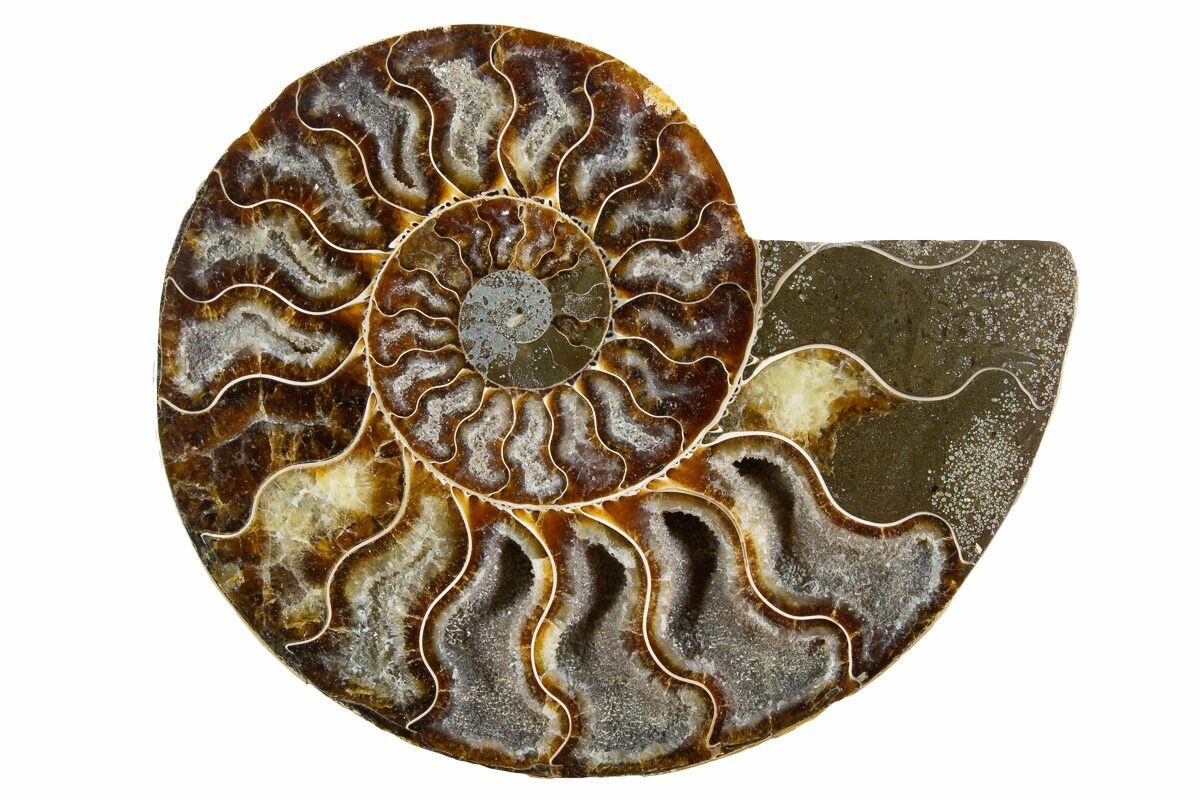 4.75" Cut & Polished Ammonite Fossil (Half) - Deep Crystal Pockets