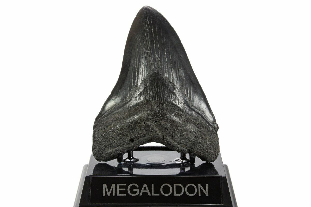 The standard measure for megalodon teeth is slant height, or the longest edge of the tooth. Adult megalodon teeth were typically in the 4 to 5 inch range: teeth over 6 inches are rare and represent super-sized individuals. Only a handful of teeth have ever been found over seven inches.