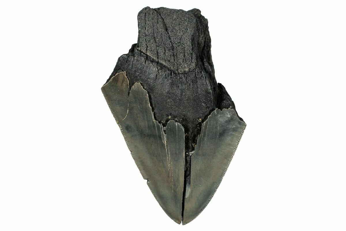 This is a partial, 4.79" fossil Megalodon tooth collected from the Hawthorn Formation in Georgia. Given the size of this tooth, it would have come from a prehistoric, mega-shark in the 35+ foot size range.