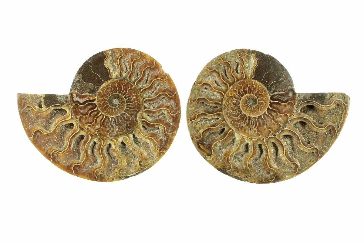 It exhibits gorgeous mineralization within the chambers, each separated by white calcite septa (divisions). This highly polished, exotic ammonite makes a superb display piece with tremendous historical appeal.