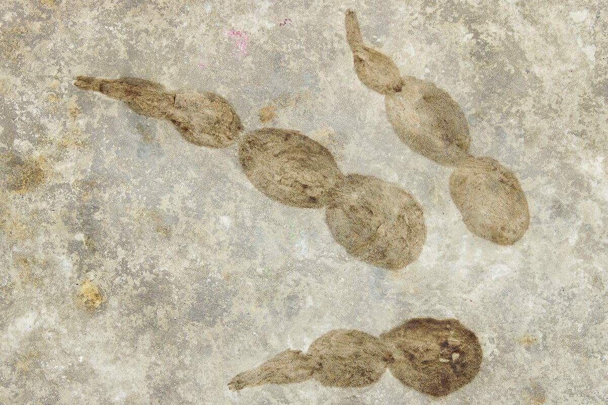 This is a 4.8" long, negative impression track of a theropod dinosaur from Languedoc-Roussillo, France. Grallator is an ichnogenus (form taxon based on footprints) which covers a common type of small, three-toed print made by a variety of bipedal theropod dinosaurs.