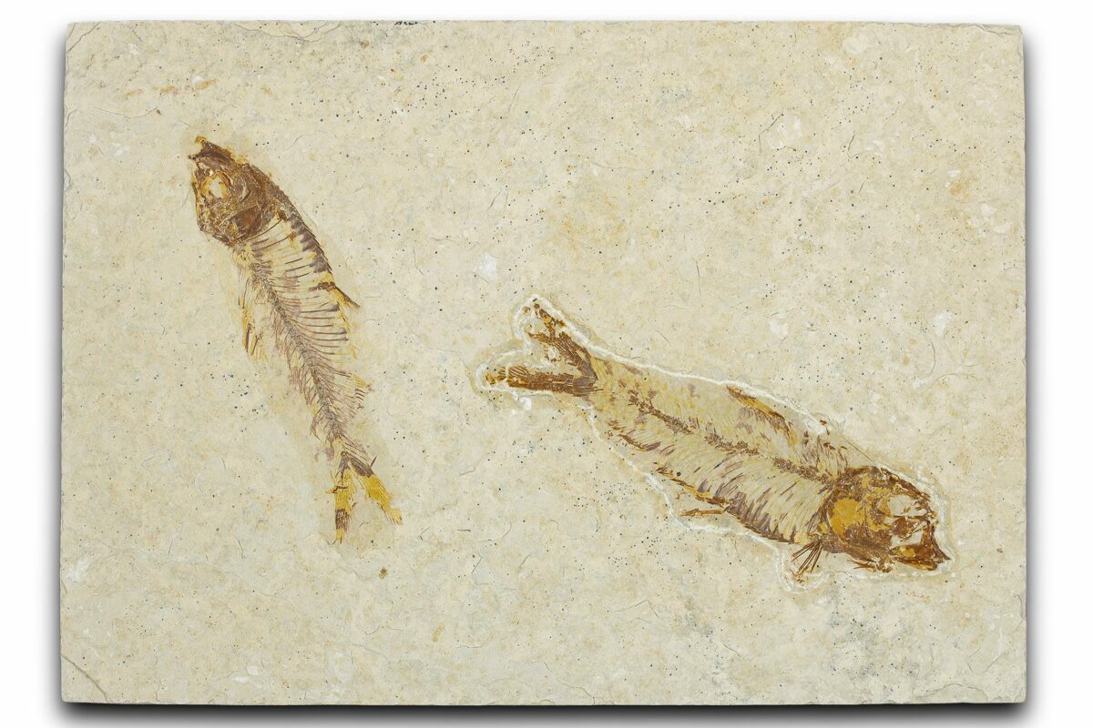 4.8" Limestone with Two Fossil Fish (Knightia) - Wyoming