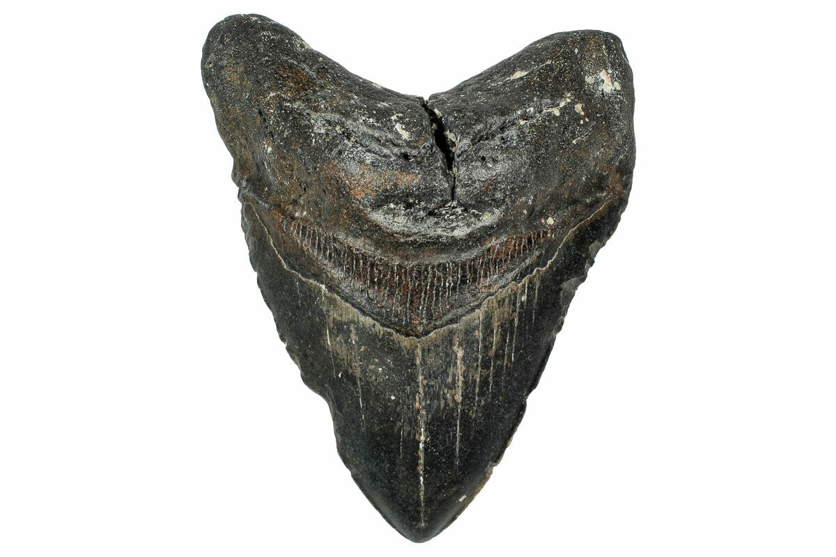 Megalodon had a cosmopolitan (global) distribution and its giant teeth can be found in deposits throughout the world. Some are collected on land in phosphate deposits, while many are collected from rivers and coastlines after eroding out of the rocks. This contributes to the water-worn, polished appearance of many teeth.