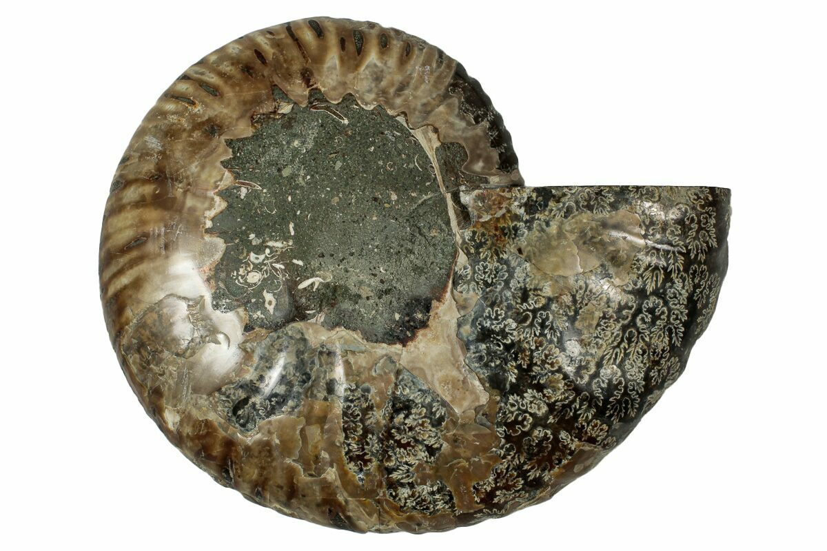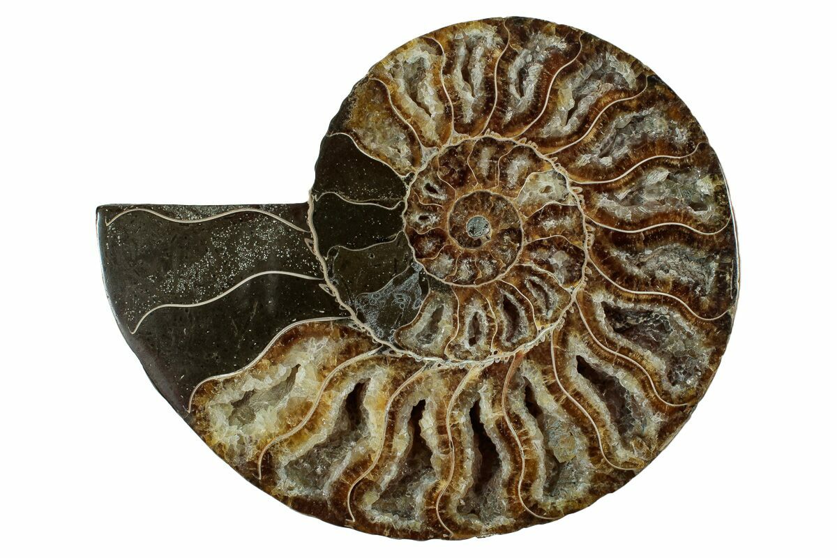 4.85" Cut & Polished Ammonite Fossil (Half) - Deep Crystal Pockets