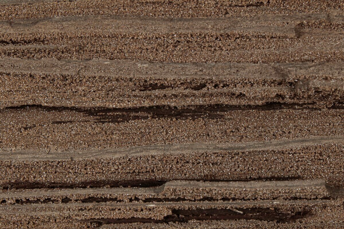 This is a 4.85" wide section of permineralized wood from Zwenkau, Germany. This resulted in very detailed preservation that makes this petrified wood specimen look as if it's ready to be thrown on the fire. The sparkles that can be seen in the photos are a result of druzy quartz that encrusts much of the wood.