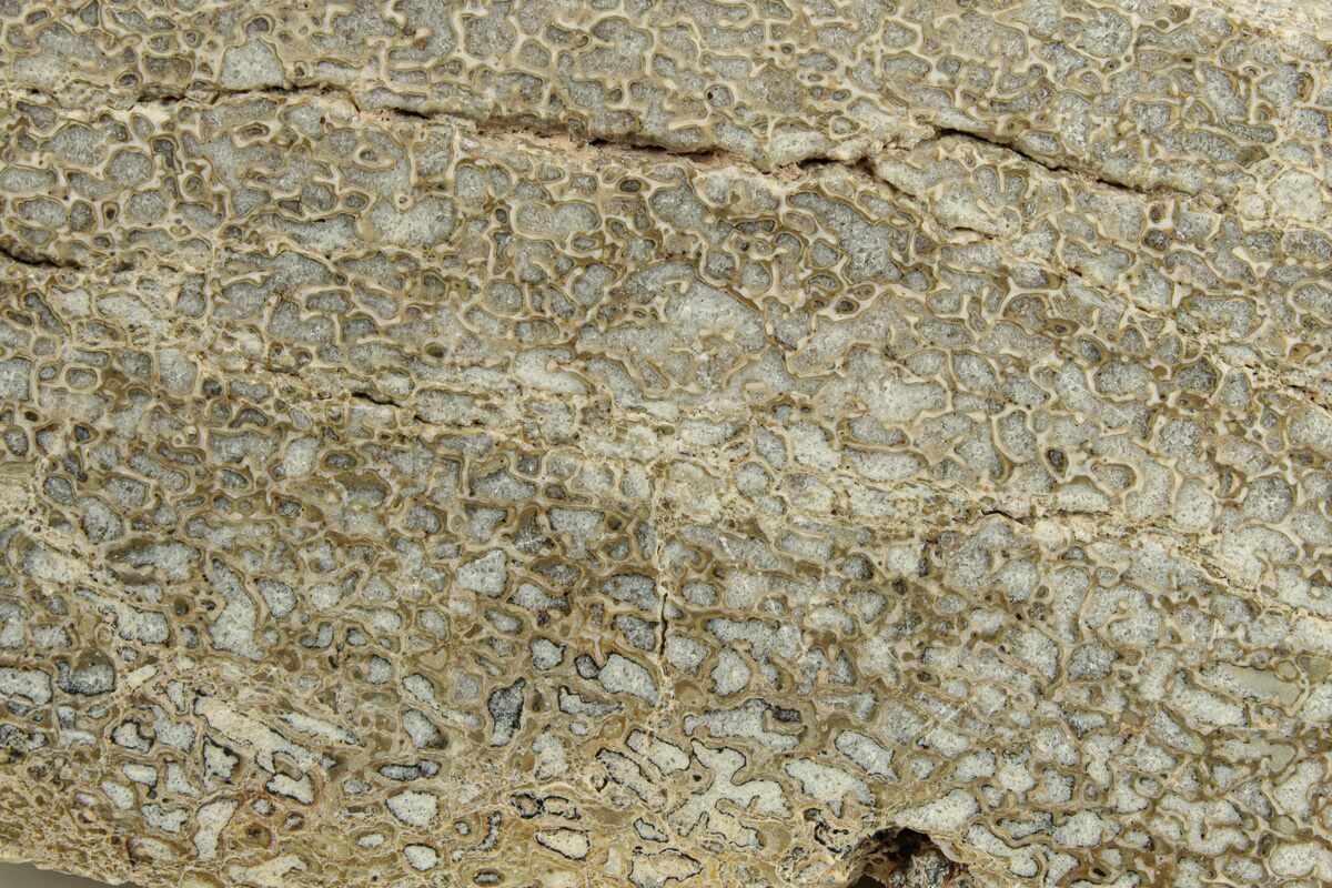 Agatized bone, sometimes referred to as "gembone", is fossilized dinosaur bone in which the original fossil material has been replaced by silica. The impurities within the silica are what give the bone color. Interestingly, this silica replacement often happens at a sub-cellular level, leaving the internal structures intact.