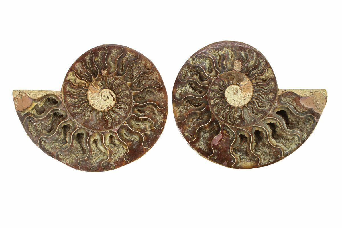 It exhibits gorgeous mineralization within the chambers, each separated by white calcite septa (divisions). This highly polished, exotic ammonite makes a superb display piece with tremendous historical appeal.