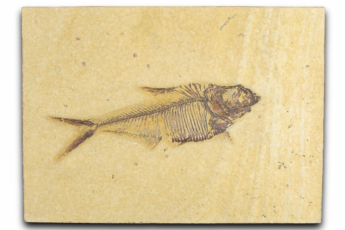 Today the wonderfully preserved fossils of Diplomystus and other Fossil Lake fauna are collected in several private quarries around Kemmerer, Wyoming. The best preserved fish fossils come from the coveted 18 Inch Layer. This layer is collected at night under high-powered lights, enhancing the faint signs of fish under the surface indicating underlying fossils. These “ghosted” fish then must go through many hours of manual preparation to remove the overlying rock and reveal the Green River fauna in all of its glory.