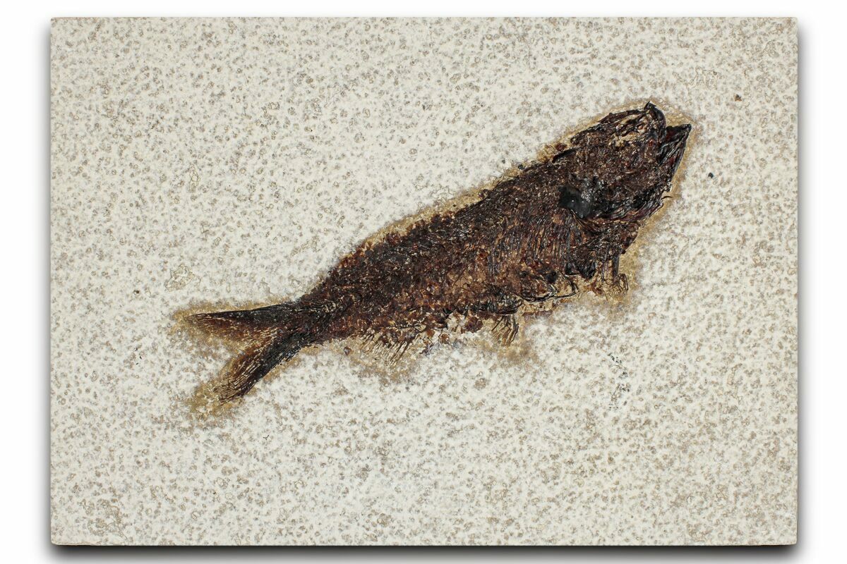 These streamlined fish are recognized by their heavy scales, small conical teeth, and rows of dorsal and ventral scutes along the body. Their fossils are among the most iconic from the Green River Formation—an exceptional 48-million-year-old lake deposit in Wyoming, Colorado, and Utah known for preserving a remarkably detailed snapshot of ancient life in a warm, lake-rich Eocene landscape.