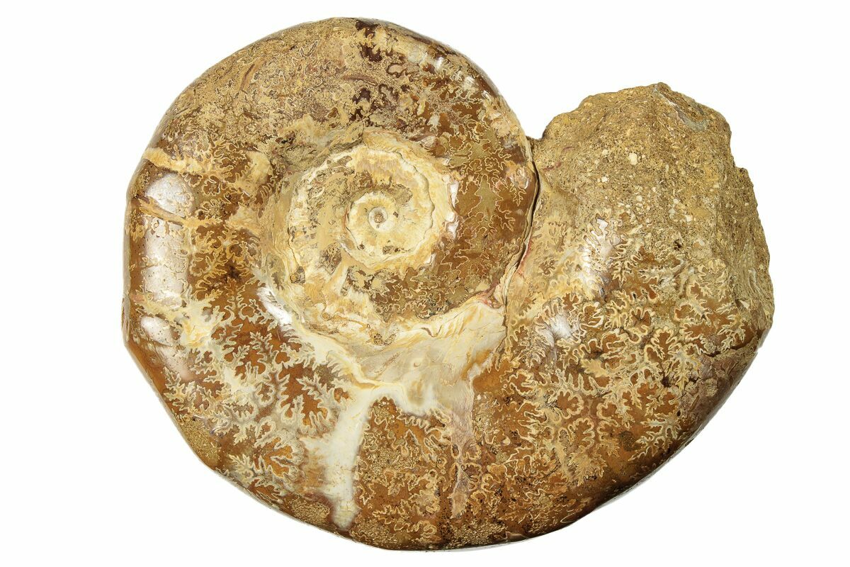 This is a 4.9" wide, Late Jurassic ammonite (Hemilytoceras) fossil collected near the town of Sakaraha in the Tulear Province of Madagascar. The open end of the fossil contains a negative imprint of another ammonite on it. It comes with an acrylic display stand.