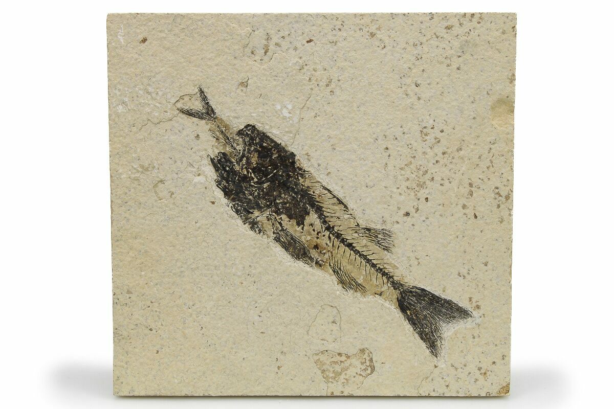 This is a really unique piece from the Green River Formation of Wyoming. It is a 4.9" fossil fish (Mioplosus labracoides) that died while choking on another fish. It literally bit off more than it could chew.