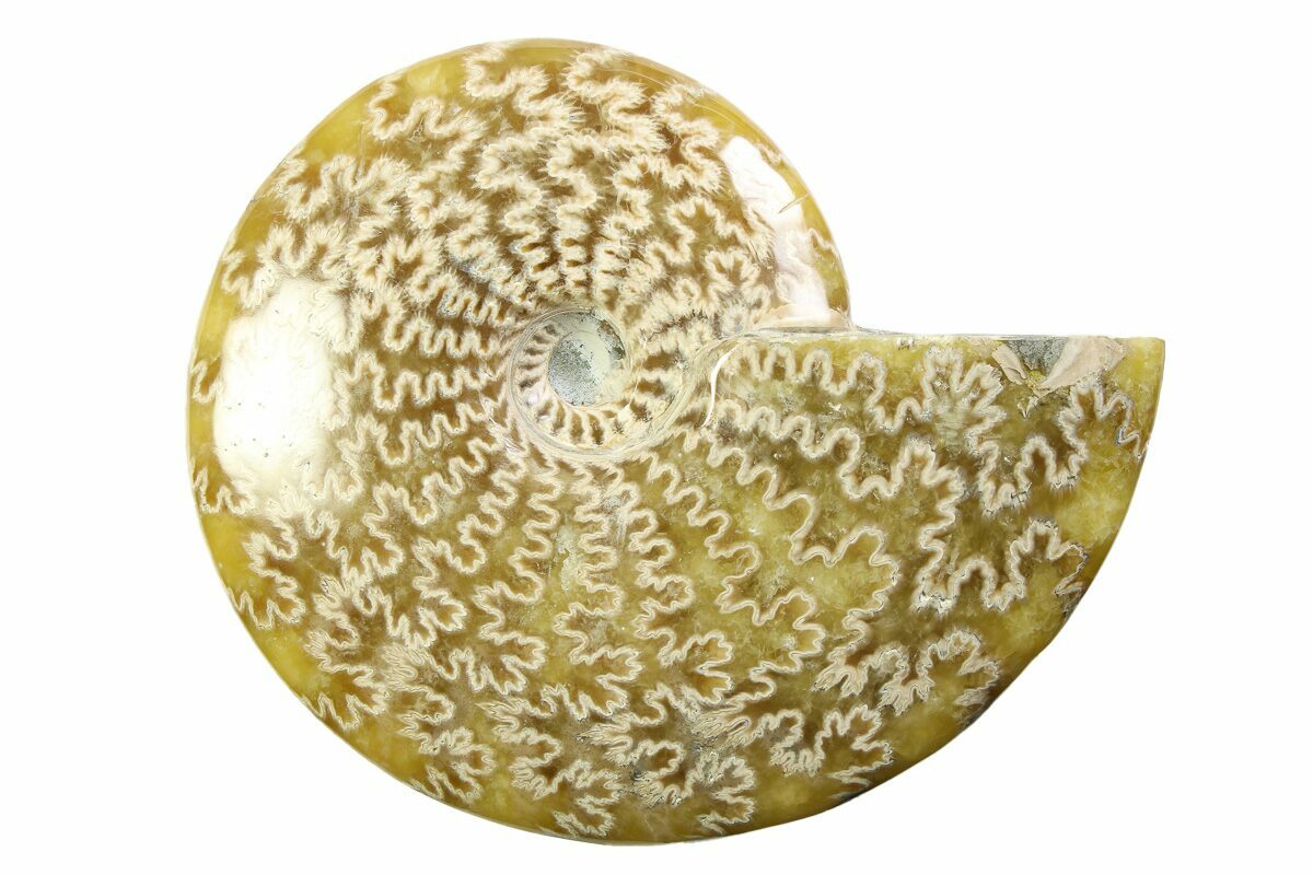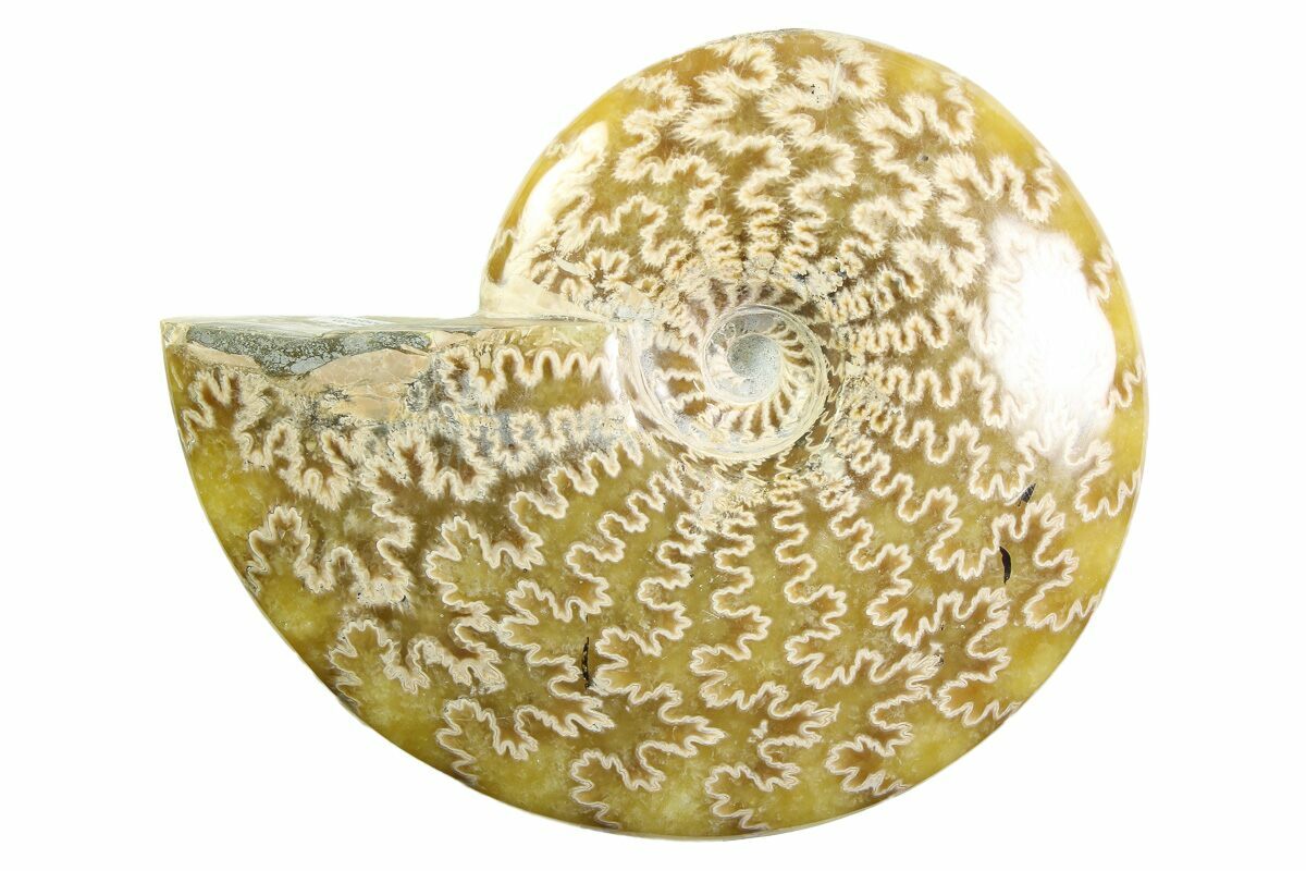 This is a 4.9" wide polished ammonite of the genus Cleoniceras, collected in Madagascar. It is absolutely gorgeous, displaying a distinctive "oak-leaf" suture pattern on the surface. This 110 million year old ammonite is truly a natural work of art, displaying beautifully on the included acrylic stand.