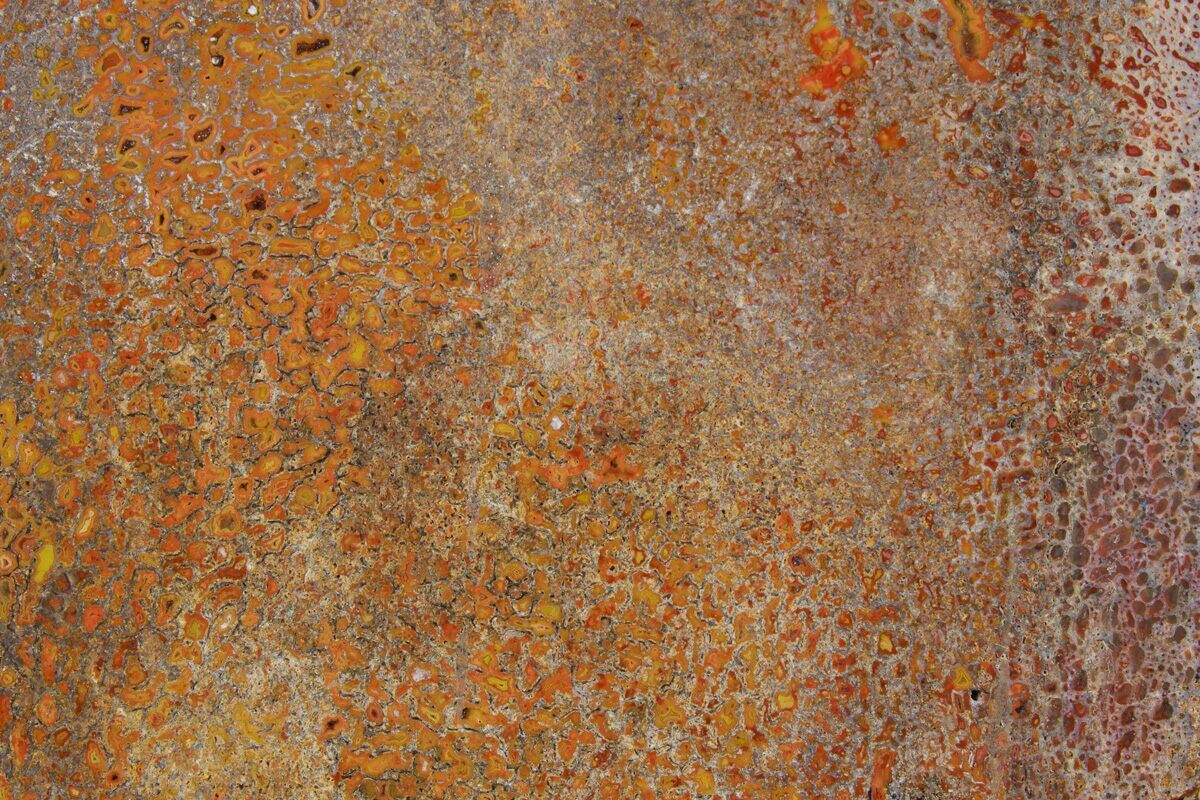 Dinosaur gembone (agatized dinosaur bone) forms when the porous structure of dinosaur bone is replaced by silica-rich minerals like agate, chalcedony, or jasper. This preserves the bone’s internal cell patterns, creating striking, web-like textures visible when polished.