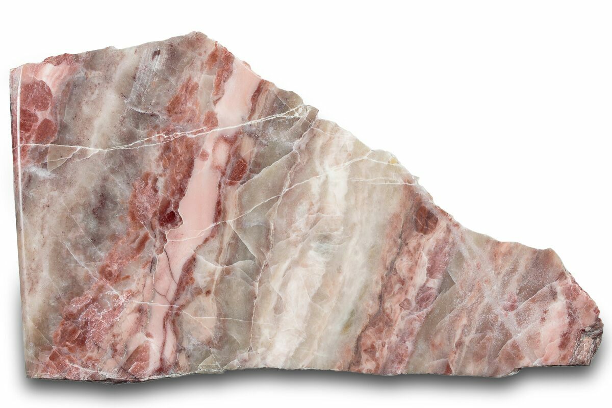 Kona Dolomite is a stromatolitic rock from the Kona Formation of the Chocolay Group in Michigan’s Upper Peninsula, dating to the Paleoproterozoic Era about 2.2–2.3 billion years ago. The rock formed in a shallow marine environment where microbial communities built layered structures known as stromatolites. In the Kona Dolomite these fossil structures are commonly attributed to the stromatolite species Collenia undosa, which produced the characteristic domed and wavy laminations preserved in the rock. When cut and polished, Kona Dolomite reveals striking cream, gray, and brown banding that reflects the original growth layers of these ancient microbial colonies.