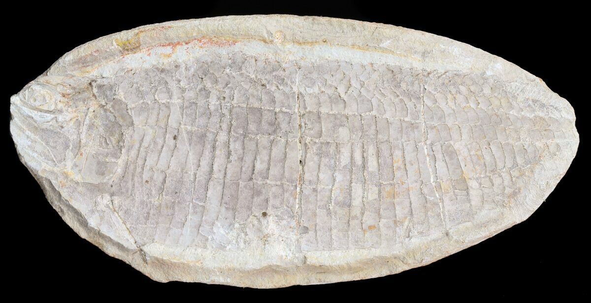 This is a Lower Triassic (247 million year old) fossil fish from preserved inside of a concretion. These uniquely preserved fish are found by cracking open the hard concretions, and show amazing detail such as scales and fins. There are about half a dozen different fish described from this location. This one most closely resembled Australosomus but the preservation makes identification difficult.