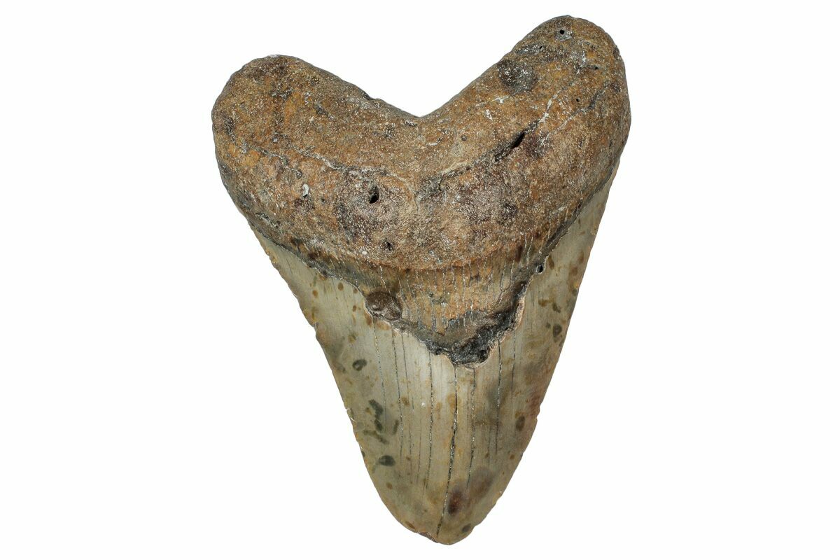 Megalodon had a cosmopolitan (global) distribution and its giant teeth can be found in deposits throughout the world. Some are collected on land in phosphate deposits, while many are collected from rivers and coastlines after eroding out of the rocks. This contributes to the water-worn, polished appearance of many teeth.